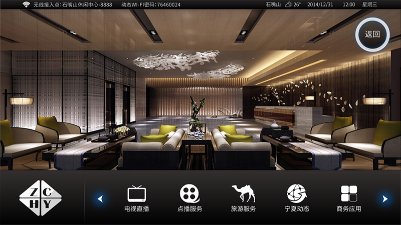新聞來(lái)源:宏輝智通 發(fā)布日期:2016-01-04 瀏覽次數(shù):161491.石嘴山酒店終端歡迎界面: